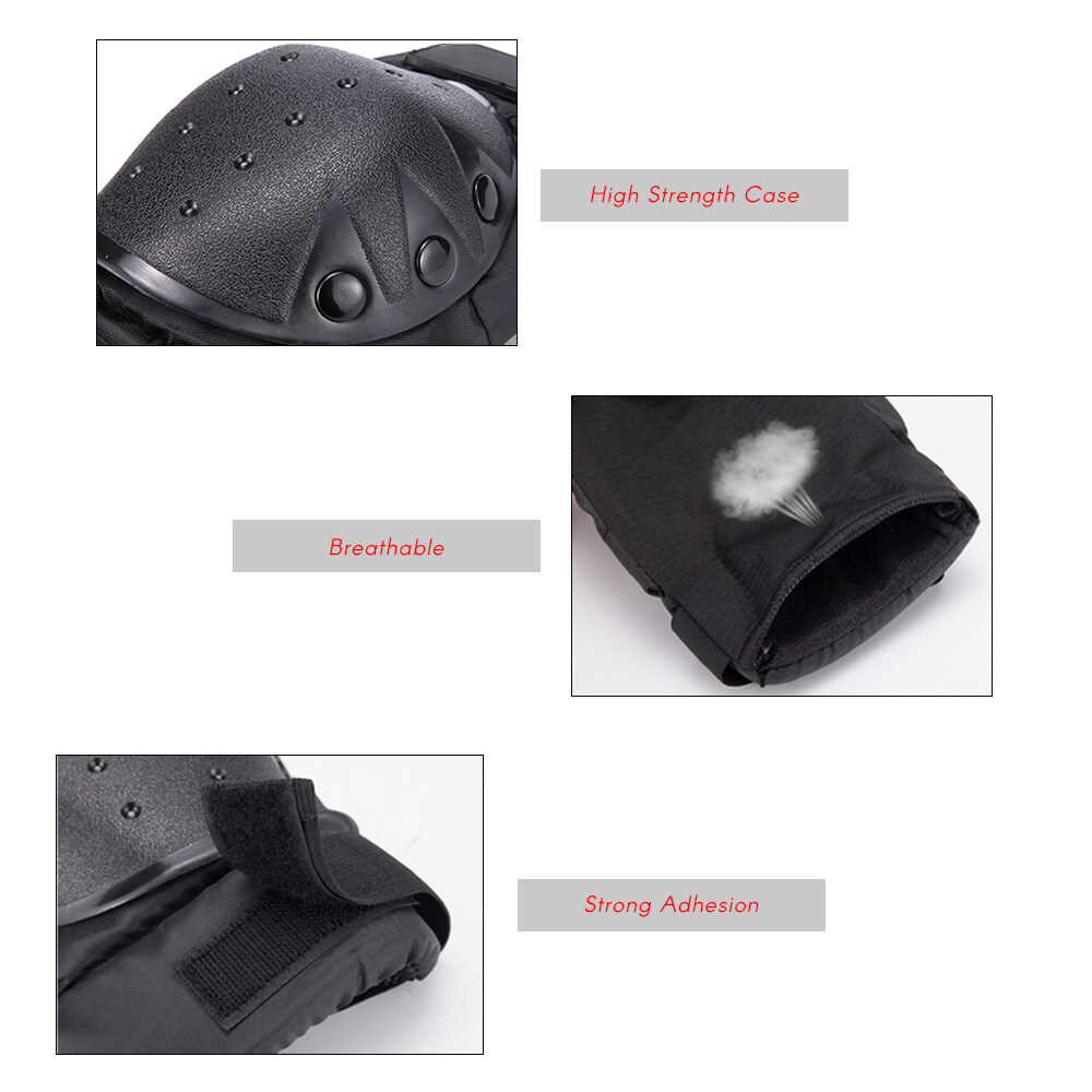 4pcs protective pads kit includes 1 pair of knee pads and 1 pair of elbow pads to protect your knees and elbows while you're doing sports. The pads are crafted from soft EVA padding and PE capsid to provide maximum protection against bumps and impacts, great for Motorbike/Motocross, Cycling, Skiing, Snowboarding, Skateboards.