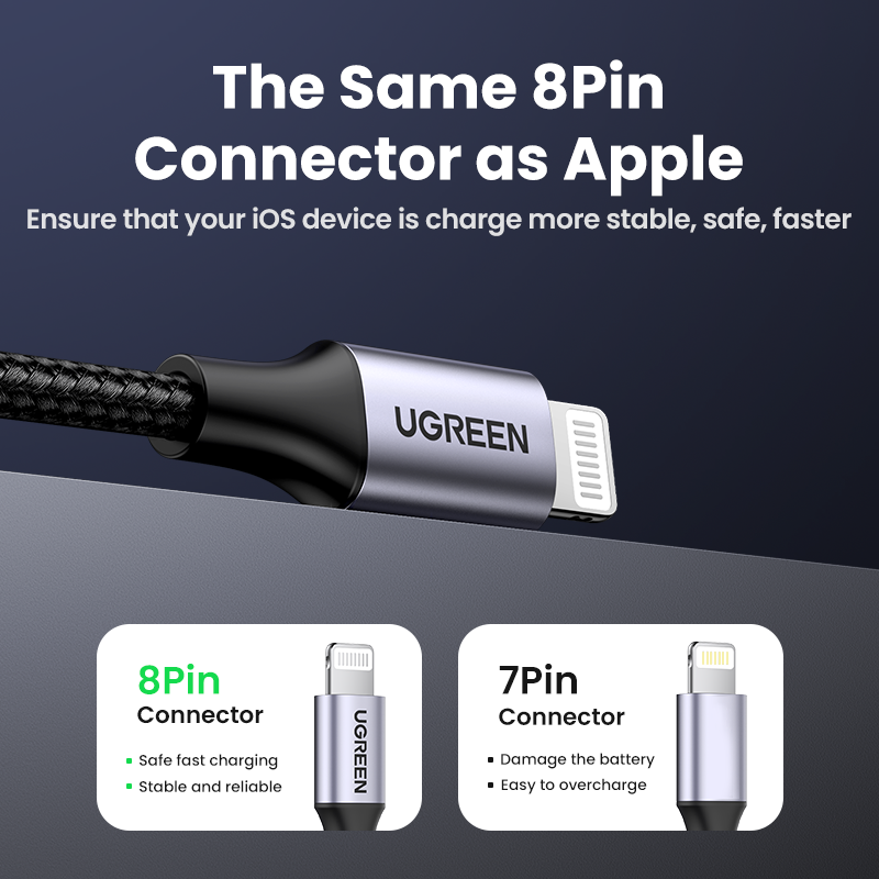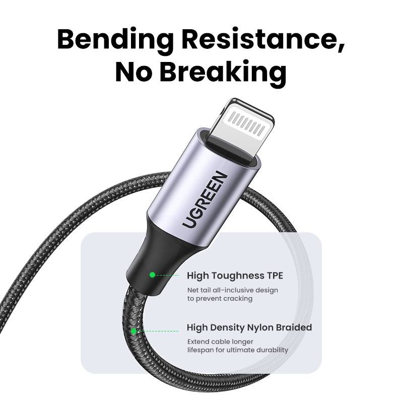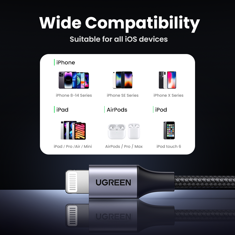 UGREEN MFI Lightning to USB Fast Charging Cable foriPhone 14 13 Pro Max iPhone 14 Plus iPhone 12 11 Pro Max 11 8 Xs Max XR 7 Mobile Phone Cable USB Charger Cord,Black/Silver-Intl