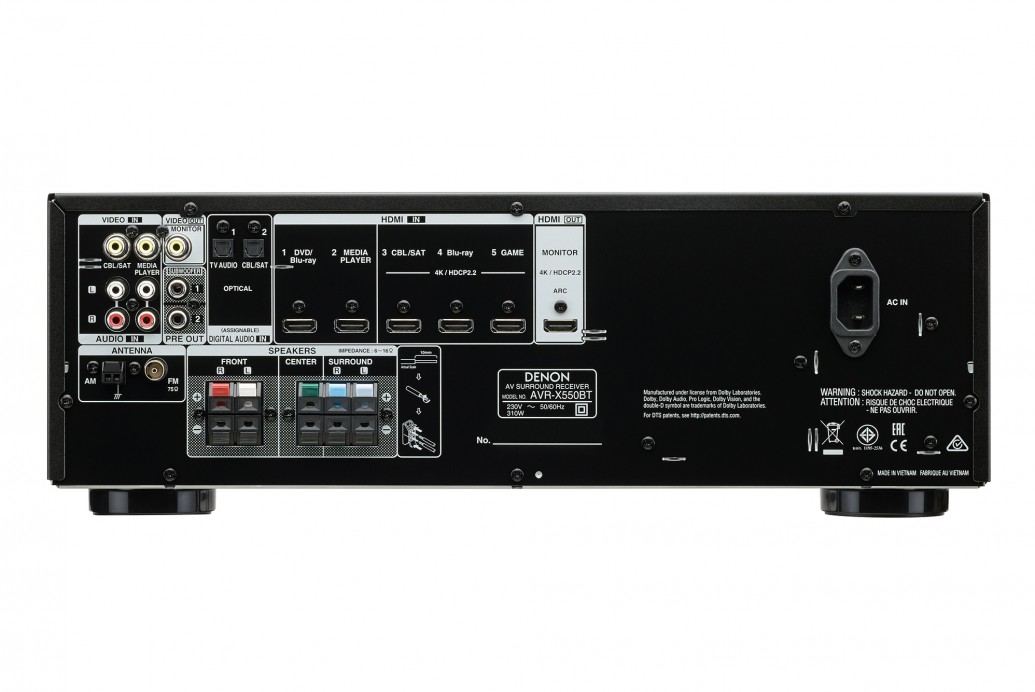 DENON AVR-X550BT AV RECEIVER with Earthquake Sound EQuatic Wireless & Water Resistant Micro-Speaker, Black