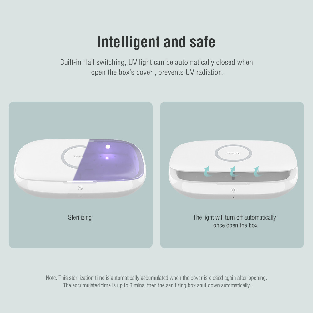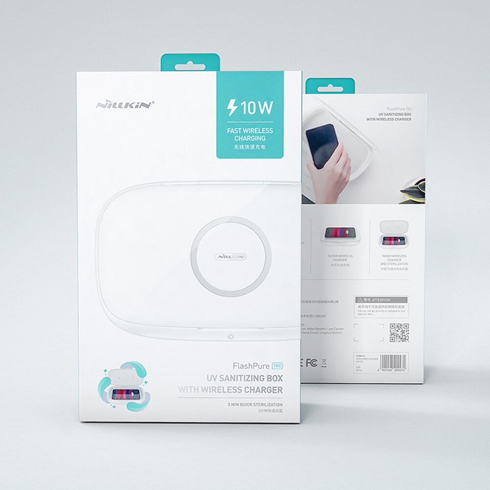 ​​​​​​​Nillkin FlashPure Pro UV sanitizing box with wireless charger Can be sterilized anytime and anywhere Sterilization rate reaches 99.5% for Phone / Watch / Headset / Jewelry