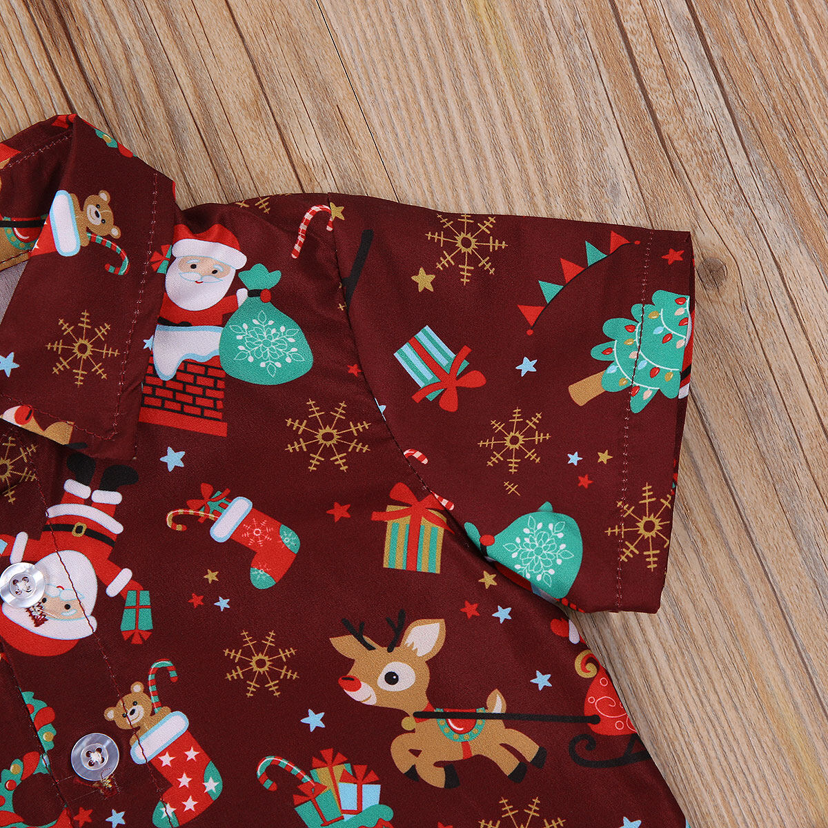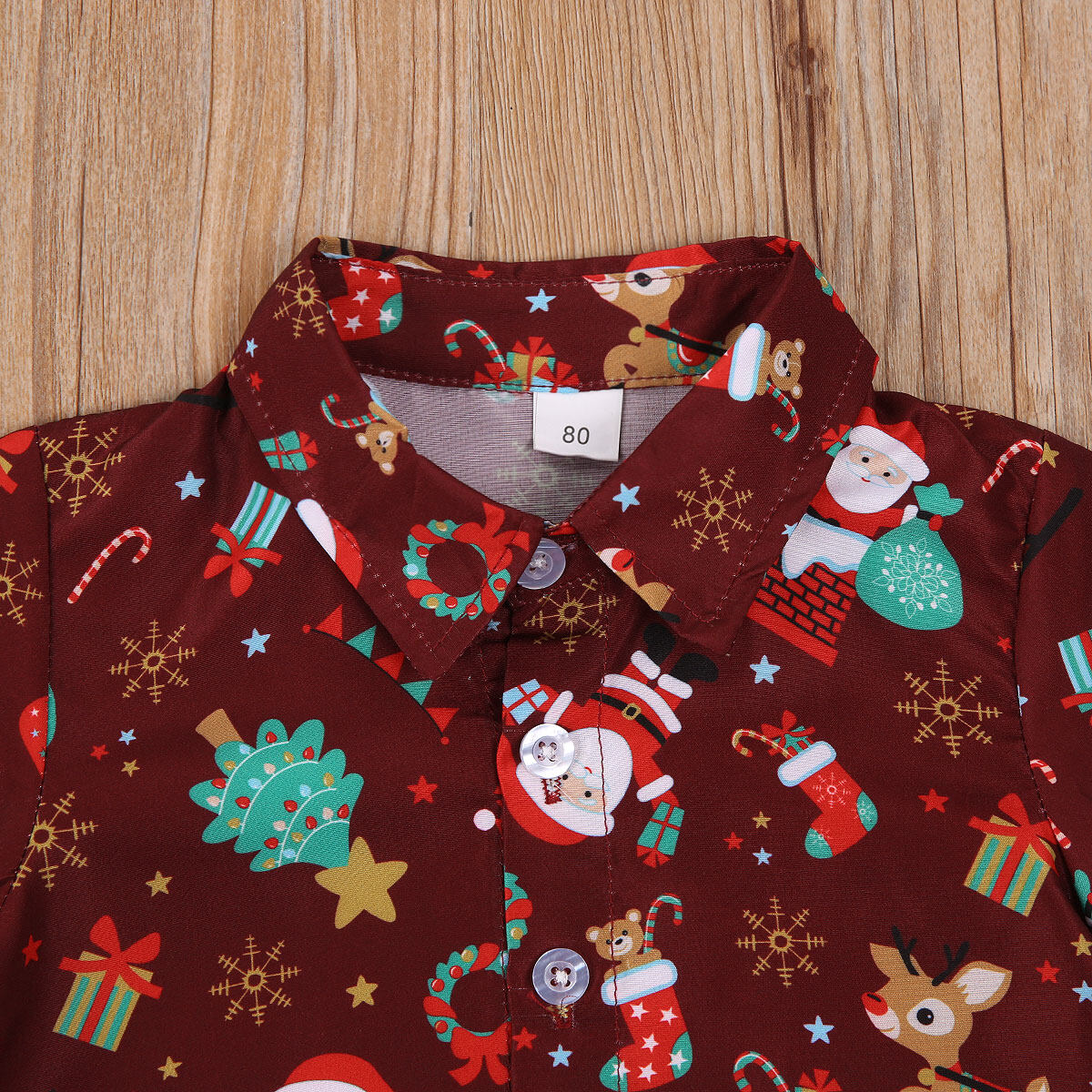 Christmas Children Kids Boy 2Pcs Suit Top+ Short Pants Polo Neck Clothes Set Oufit