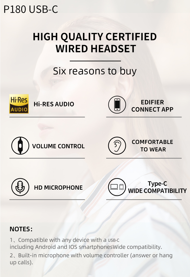 Edifier P180 Plus 3.5mm & TYPE-C (Hi-Res) Original Branded Sale Earphone Half in-ear Earbuds Build-in Microphone High Quality Bass Headphone Volume Control with 1 year warranty