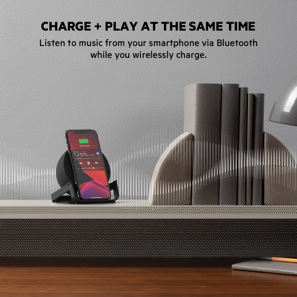 Belkin AUF001my BoostCharge Wireless Charging Stand + Speaker with Power Adapter
