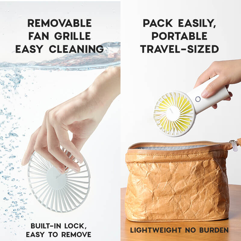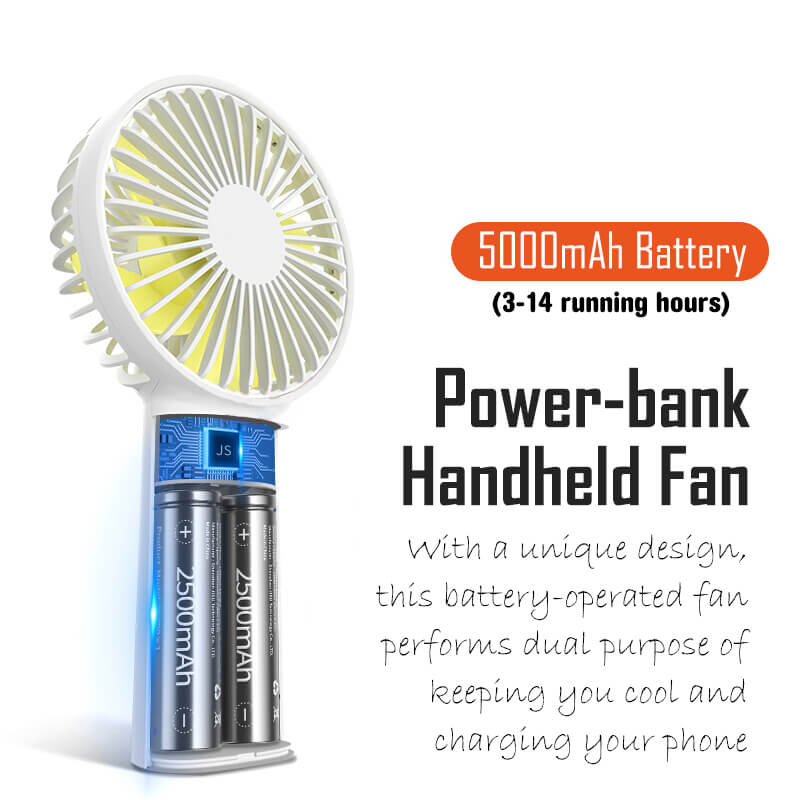 With the unique design, this USB rechargeable handheld fan performs a dual purpose of keeping you cool and charging your phone. It can either be desktop desk fan or a handheld fan to satisfy your different needs with cool stable design.