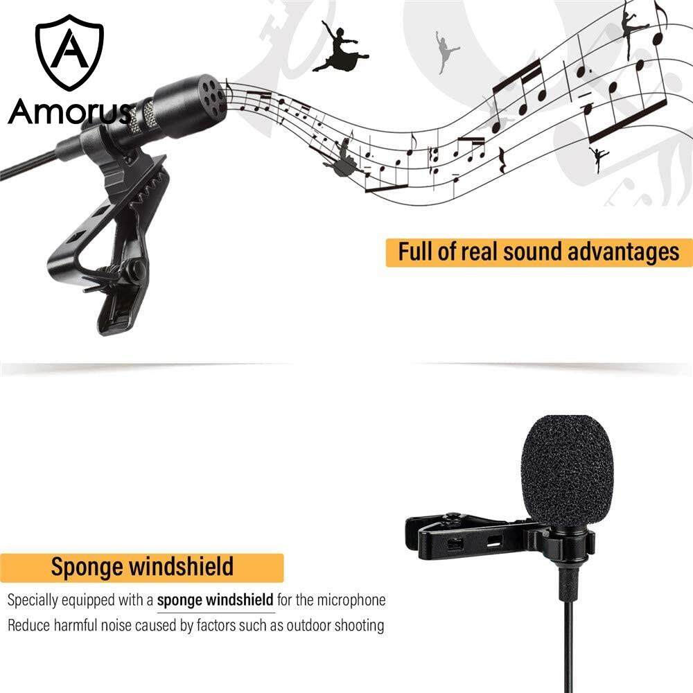 Amorus Mini Karaoke Record Lavalier Lapel Microphone 2m for iPhone iPad etc.