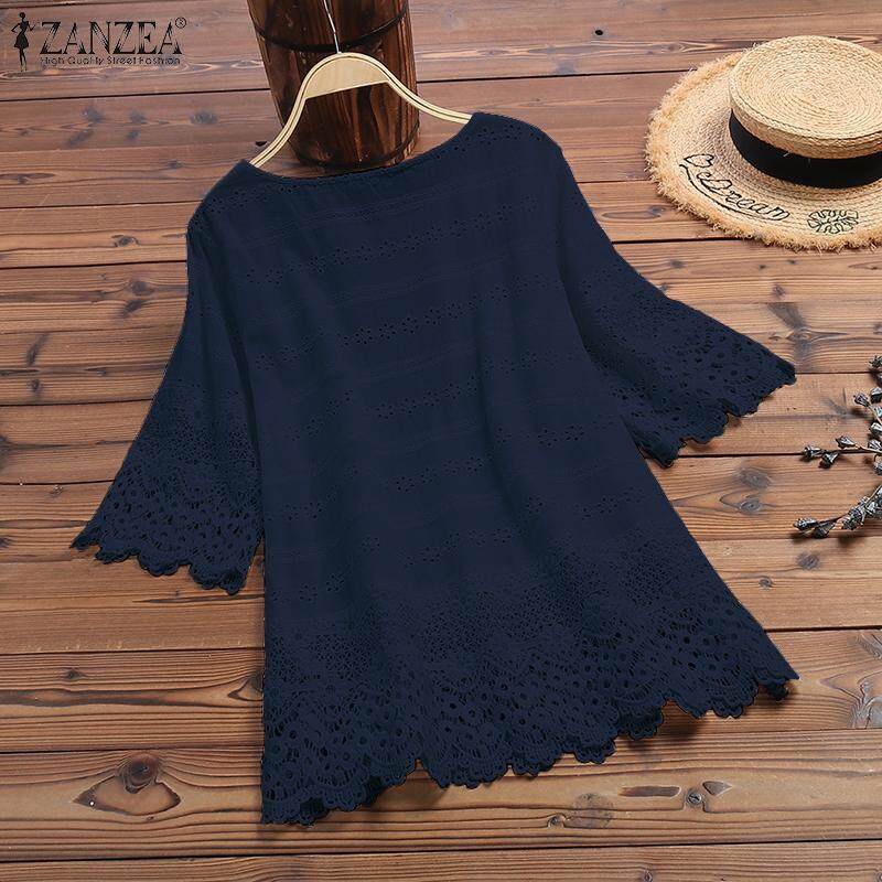 Rulfepy Womens Embroidery Blouse Casual Loose Tops Lace Up Shirts Plus Size ZANZEA