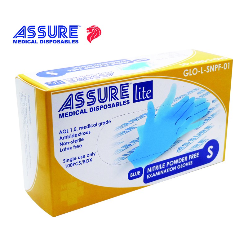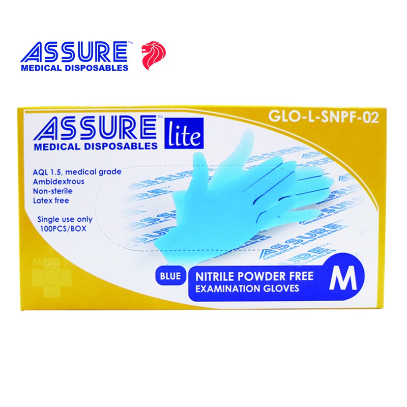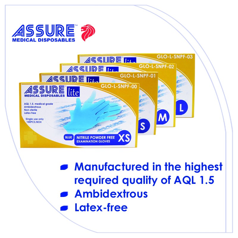 [Bundle of 3] ASSURE Soft Nitrile Gloves Lite Powder-Free Blue 100 Pce/Box