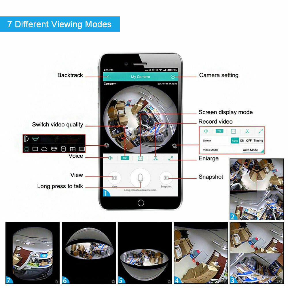 360 degree panoramic view, see the whole picture in the home, without rotating the camera, monitor without dead Angle.
