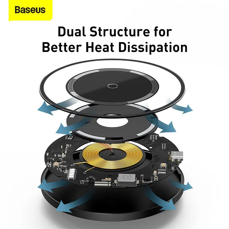 Baseus 15W Wireless Charger For iPhone 13, iPhone 12 Mini, iPhone 12 Pro, iPhone 12 Pro Max, Airpods, Airpods Pro - Qi Wireless Charging