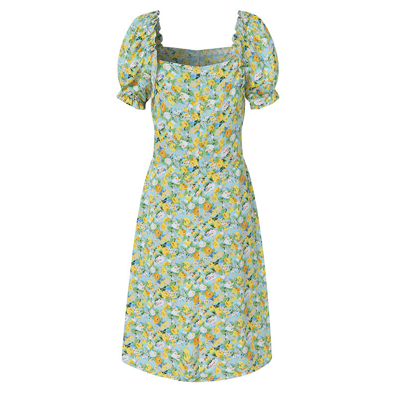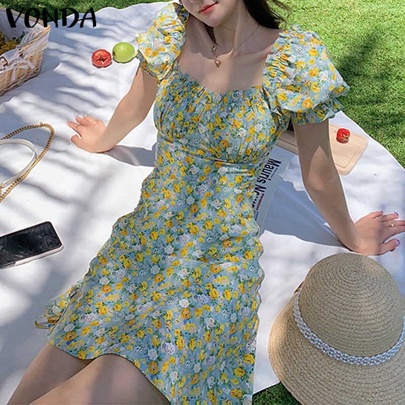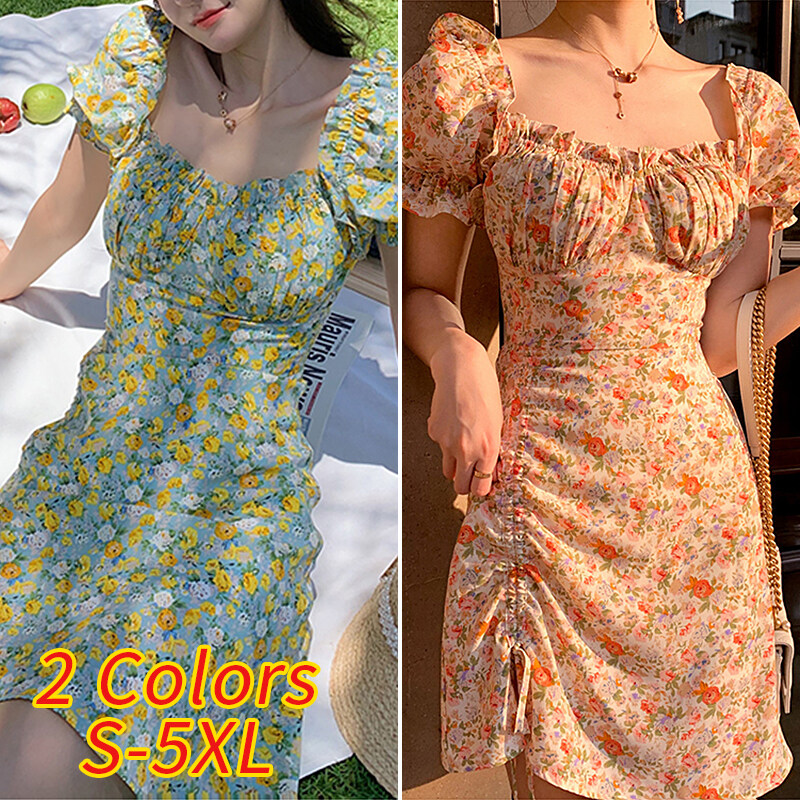 MASHYCHIC VONDA Womens Summer Short Sleeve Casual Pleated Dress Printed Floral Sundress (Korean Floral)