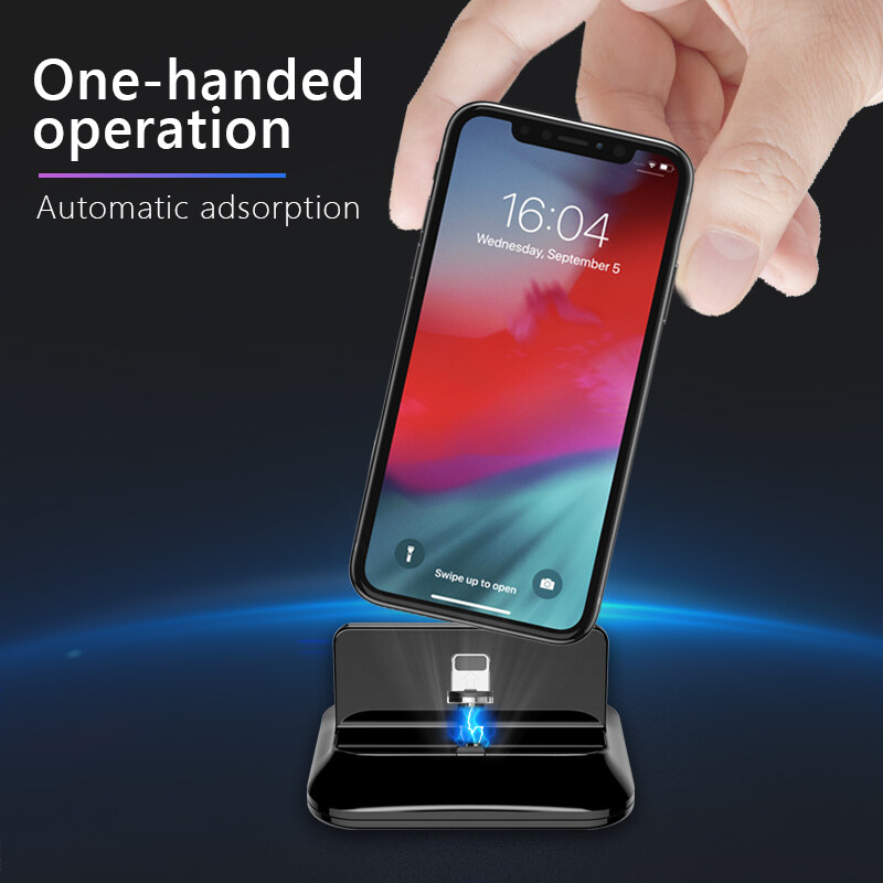 VAORLO 3in1 Magnetic Charger Dock Universal Phone Charge Micro usb Type C Lightning Stand Holder compatible with Apple iPhone 8 7 6 Plus X XR XS MAX For Vivo Oppo Huawei Desktop Charging Blacket