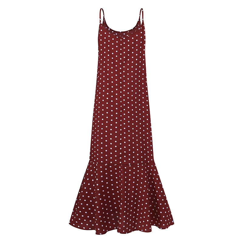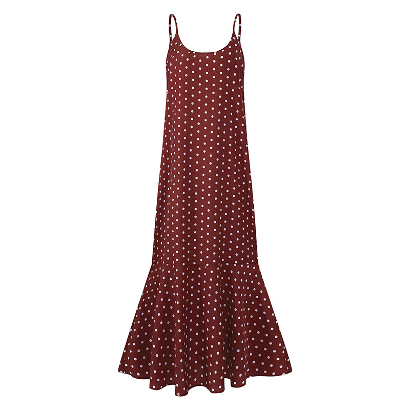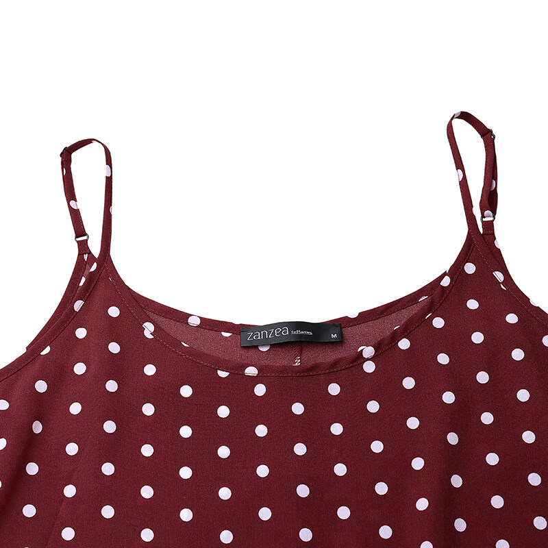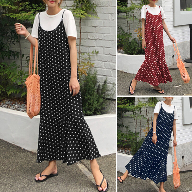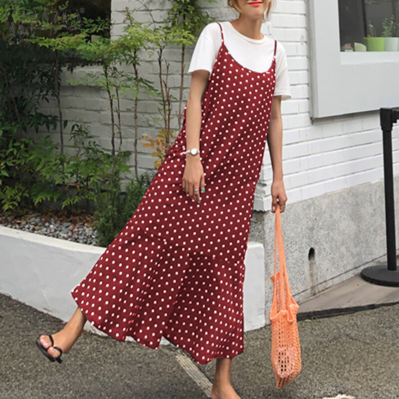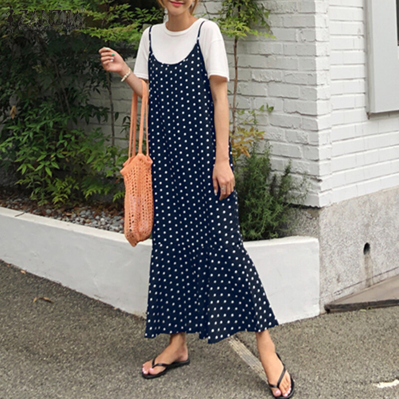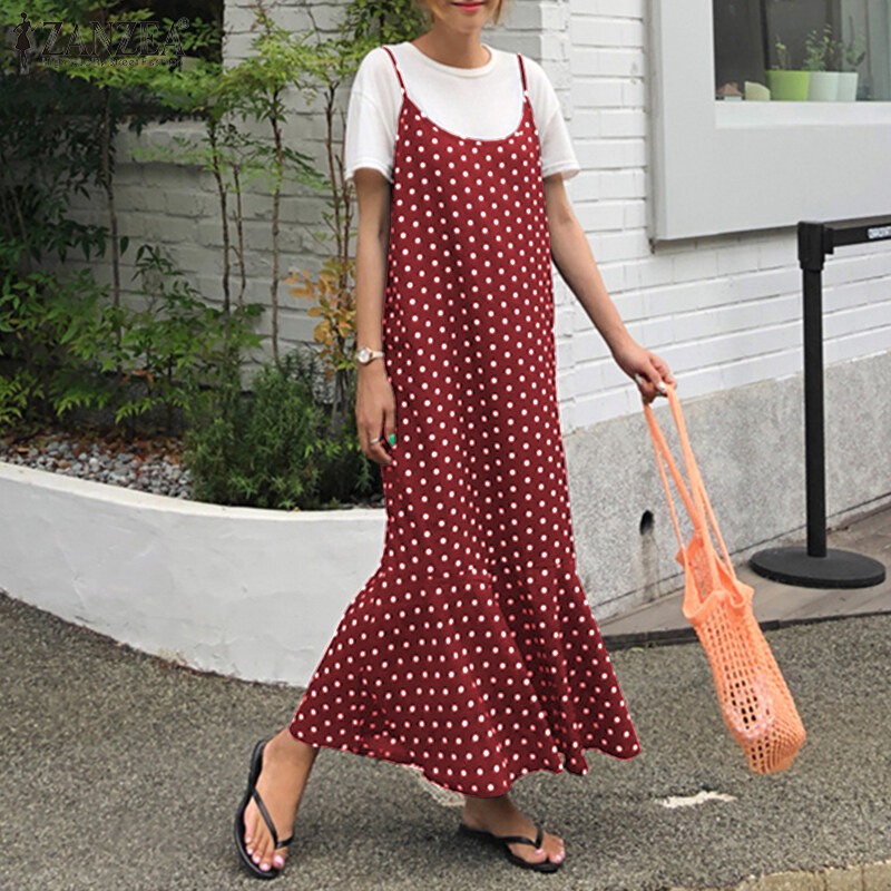 ZANZEA Korean Style Women Strappy Fishtail Long Maxi Sundress Vintage Polka Dot Slip Dress
