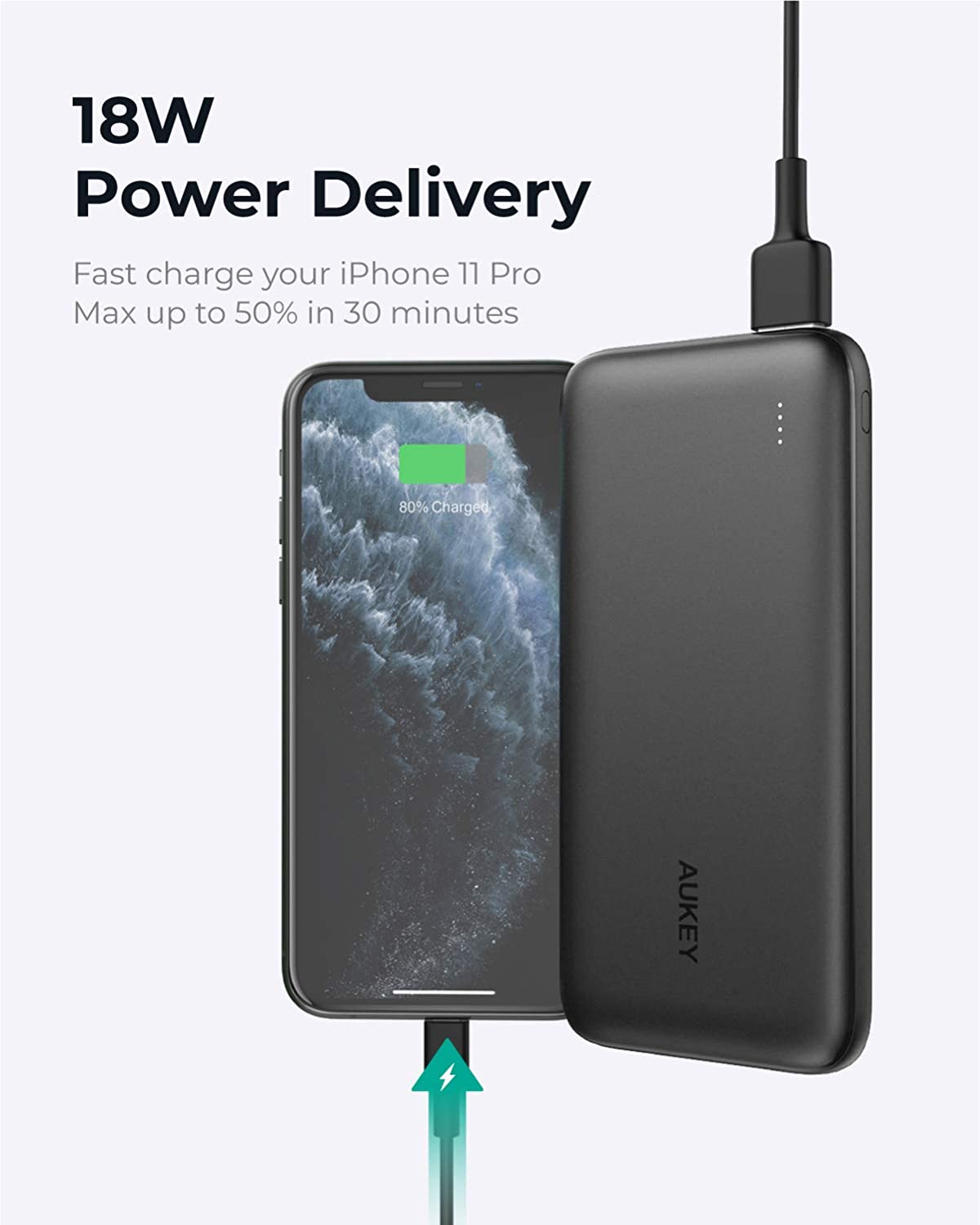Fast Recharging: Refill the Power Bank faster than ever with 18W INPUT in just 3.5 hours with an 18W PD charger.