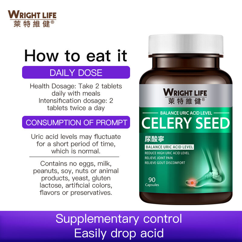 Wright Life Celery Seed Extract 12000mg,Thyme Extract 400mg ,Tart Cherry Extract 400mg ,Gynostemma Pentaphyllum Glycosides 19600mg For Gout Relief Prevent Uric Acid Build-up Supplement 90 Vegetarian C
