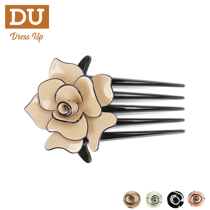 [SG] 11cm Camellia French Pleat Hair Style Hair Comb, 5 Teeth Elegant Stewardess Hairstyle Hair Comb Clip