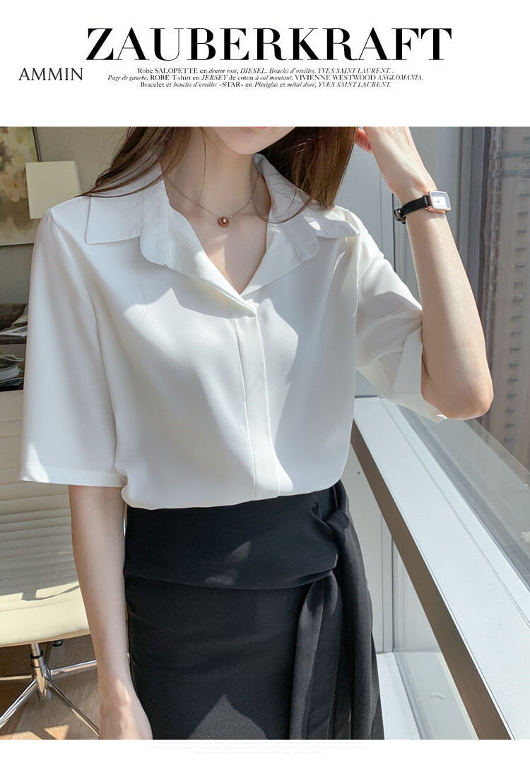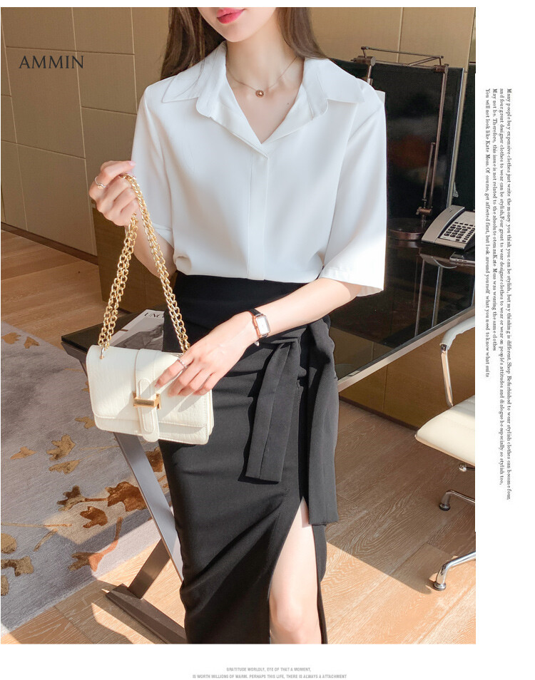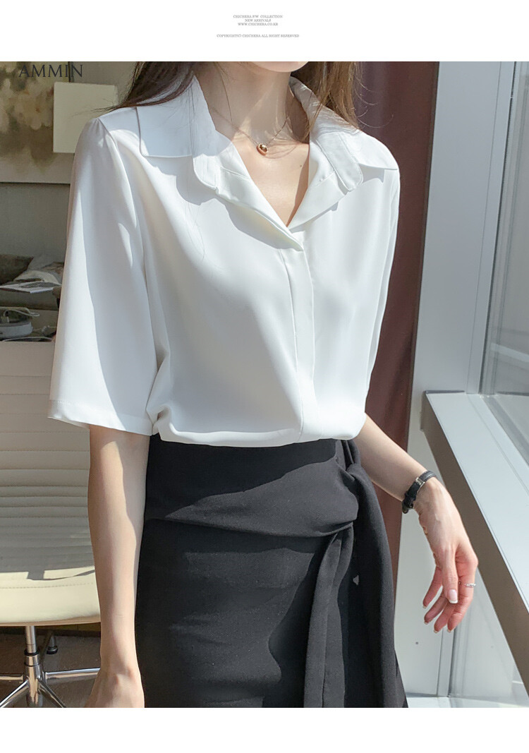 AMMIN Simple fashion lapel cardigan cardigan chiffon shirt women's mid-sleeve summer 2021 new shirt all-match western style blouse tops