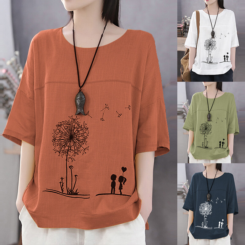 Rulfepy ZANZEA Women Oversize Short Sleeve Summer Tops Ladies Cartoon Cotton Shirts Blouses Tee