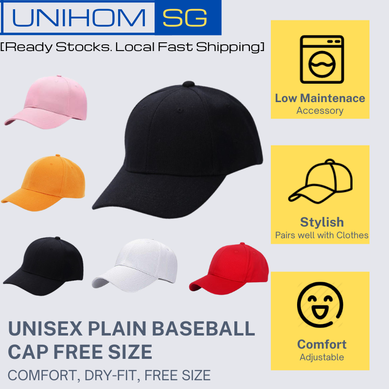 UnihomSG [ReadyStock] Unisex Plain Baseball Cap 14 colours | 100% Polyester | Free Size