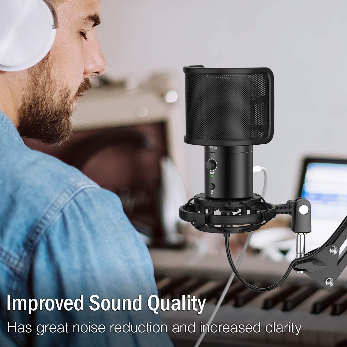 FIFINE T683 USB Microphone Bundle with Mute Button & Volume Dial & Monitoring Jack for PC / LAPTOP