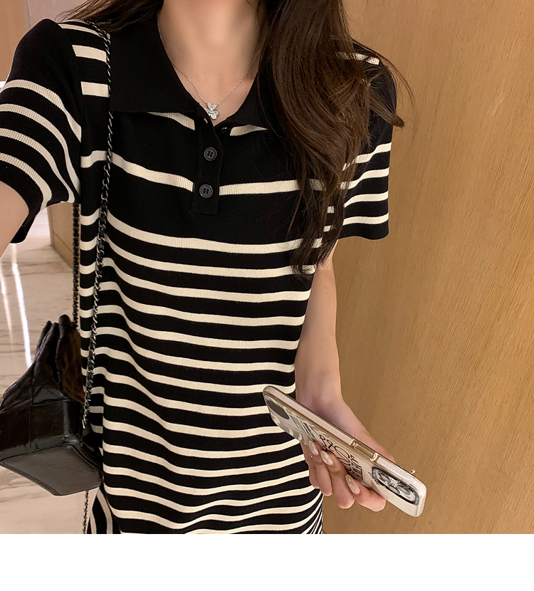 Missliu Fashion Korean Summer New Style Loose Casual Polo Collar Short-sleeved T-shirt Skirt Straight Fashion Striped Dress