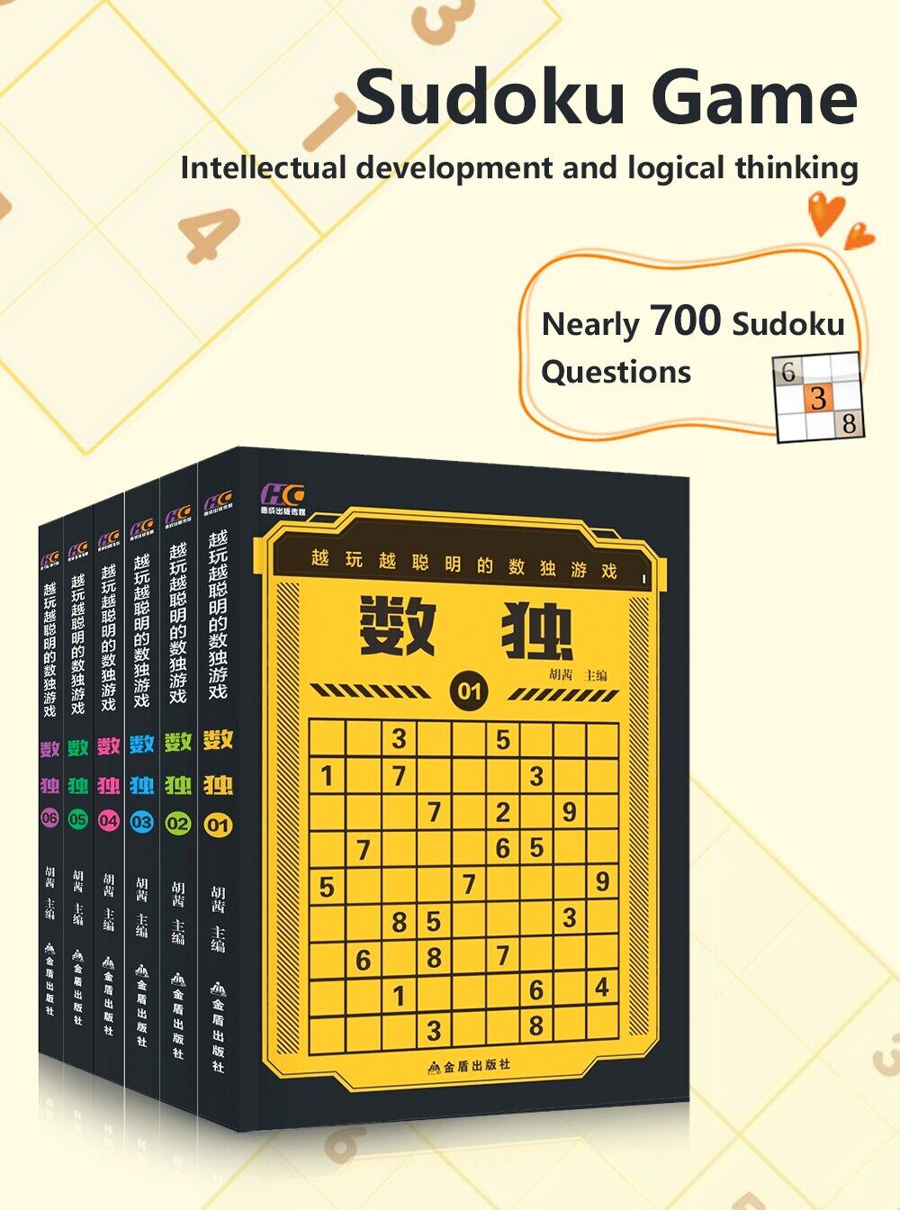 6 Books/set Chinese Sudoku Solver Game Children's Book Primary School Interesting Mathematics Logical Reasoning Ability Brain Development Kids Crossword Puzzles Sudoku Play Pocket Book
