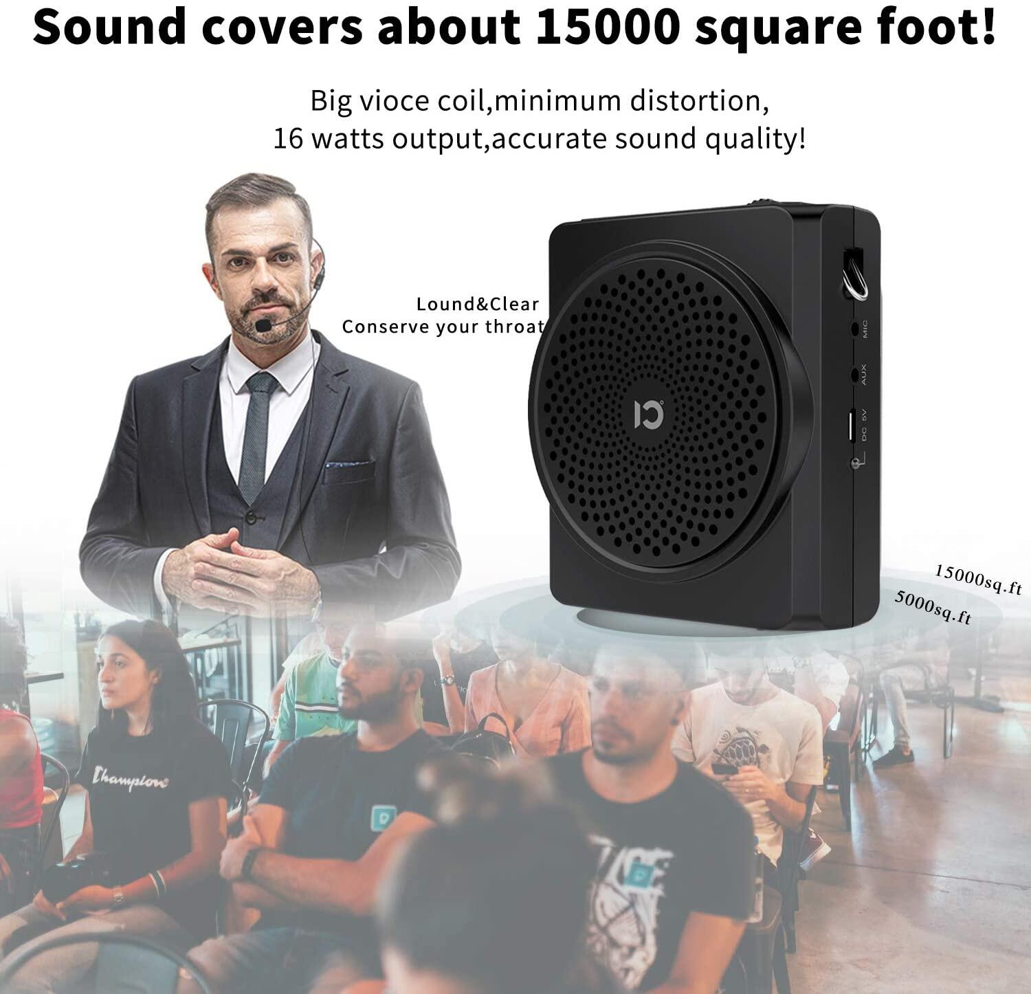 SHIDU S619 UHF Portable Voice Amplifier + S6 Lavalier Wired Mic with UHF Microphone Headset, Mini Bluetooth Pa Speaker 16W 2200mAh Rechargeable Personal Amplifier for Teachers Tour Guide Yoga Training