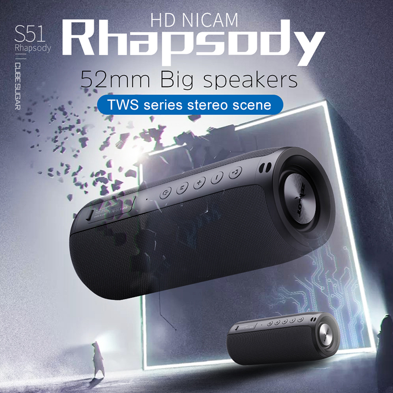 ZEALOT S51 TWS Wireless Speaker Bluetooth 5.0 Soundbar Portable Heavy Bass 8D Stereo Sound Support AUX Micro SD Card USB Pendrive Microphone