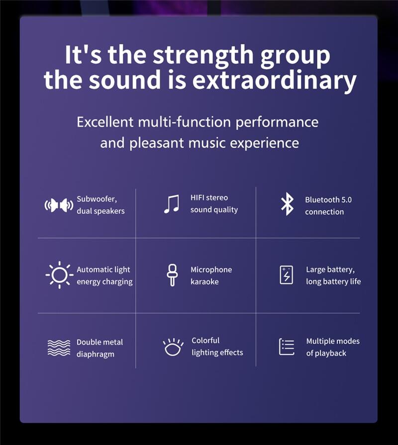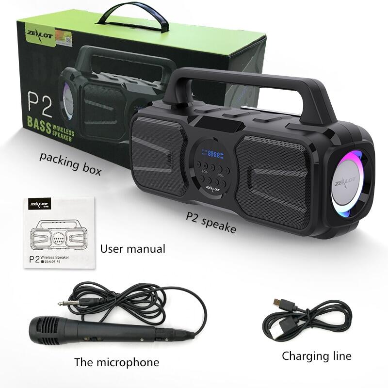 Zealot P2 Big Solar Bluetooth Speaker 20W IPX5 Portable Column Bluetooth Music Center Acoustic System Subwoofer with TF AUX Fm