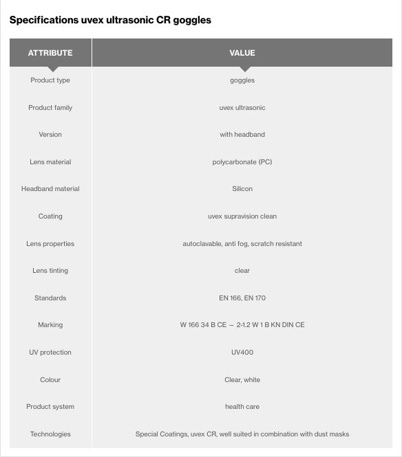 uvex safety ultrasonic CR goggles (part no: 9302500)