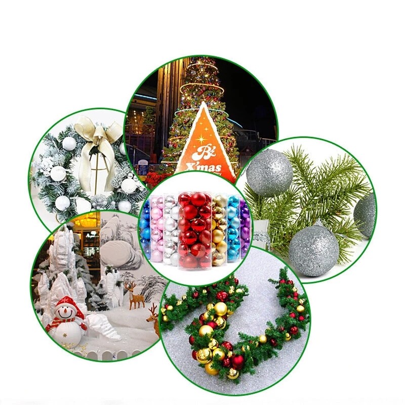 Product name: 4CM 36 pcs Christmas balls material: plastic Box size: 5.8*11.7*23.7 Christmas ball size: 4cm Quantity: 36 pcs/box