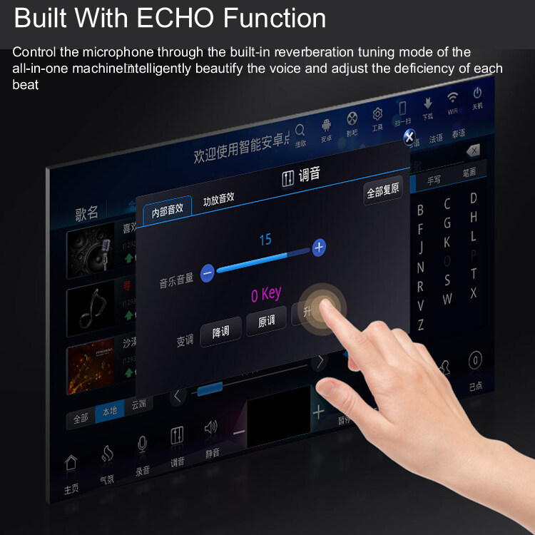 5.Songs quantity: 80K Chinese English songs preloaded for directly karaoke singing.More than 10 countries songs on cloud for free download