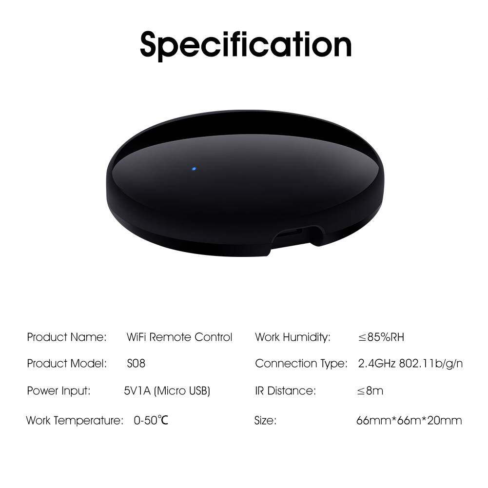 1. SMART IR can only work with 38KHZ IR, please make sure your device is IR control or RF before purchasing. (Best way to distinguish IR and RF: Put hand in front of original remote,if it doesn't work ,its IR control . If it still works ,its RF control)