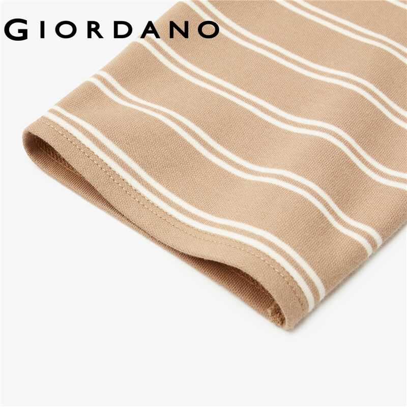 GIORDANO Women T-Shirts Simple Solid Color Comfy Smooth Boat Neck T-Shirts 3/4 Sleeves Stripe Design Solid Color Tee 05321629
