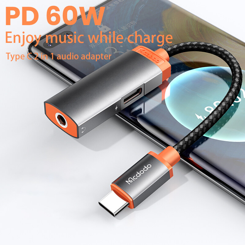 Mcdodo 60W PD USB C to 3.5mm+Type-C Headphone Digital Audio Adapter DAC Hi-Res Aux Cable For iPad Pro Macbook Samsung S21 Note 20 Huawei