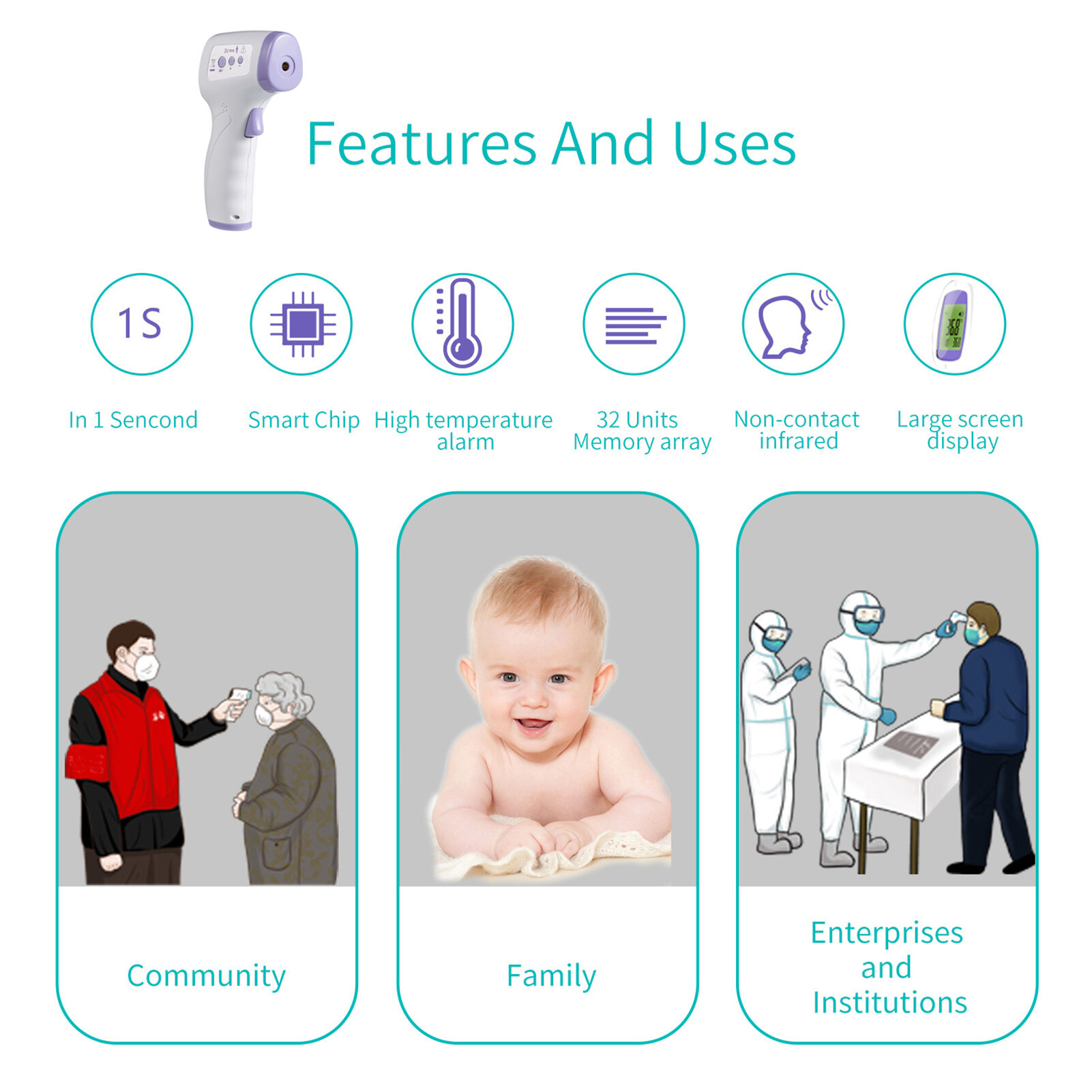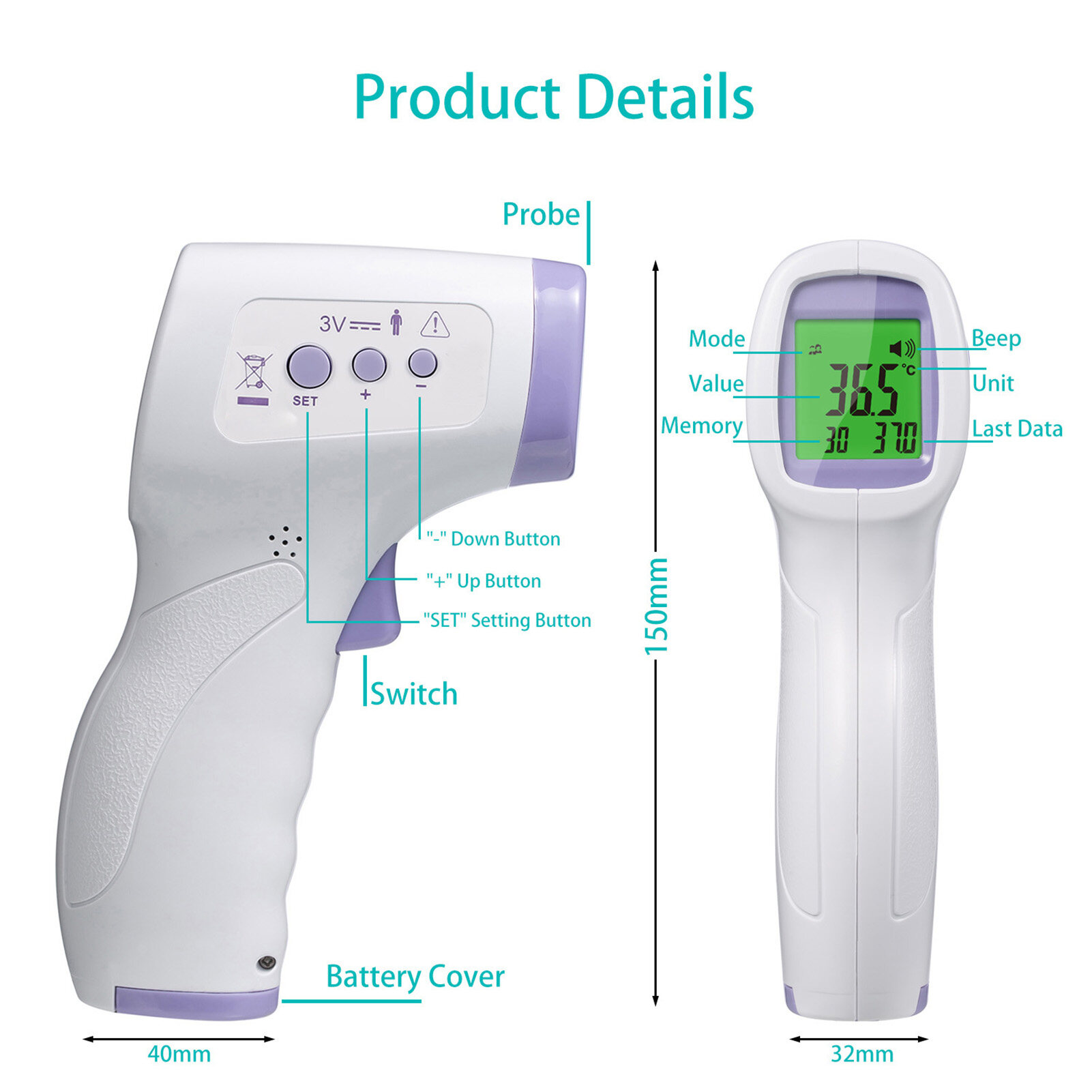 Human Body Temperature Measurement: This Infrared forehead thermometer is suitable for all ages, infants, adults and the elderly, which provides the easiest and most practical way to take a temperature.
