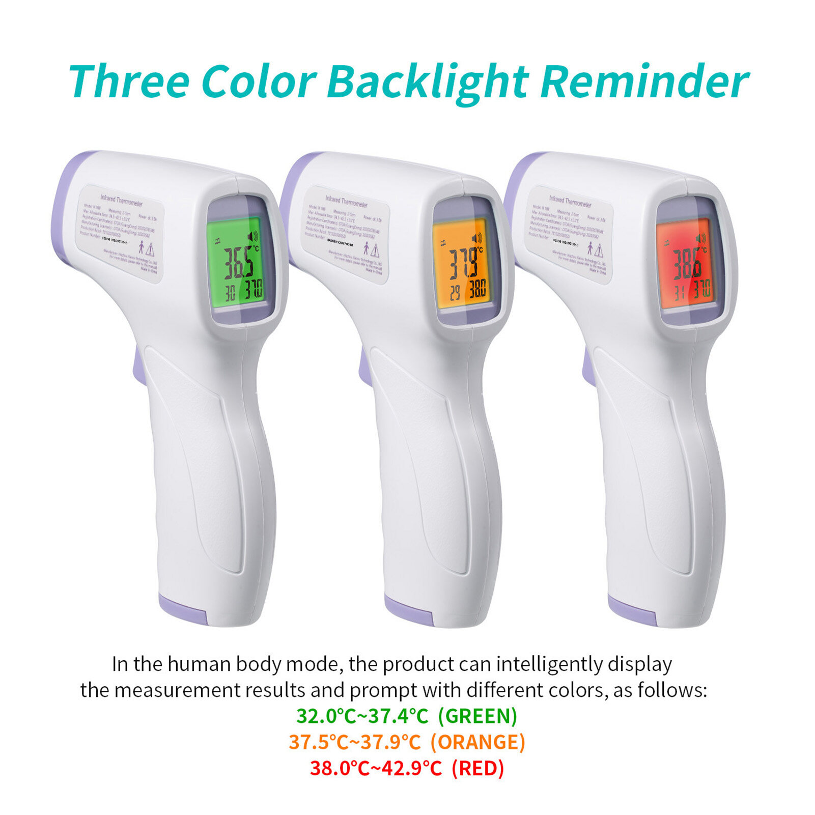 Digital Forehead Thermometer Non-contact Infrared Temperature Measurement with Color Backlight for Kids Children and Adults