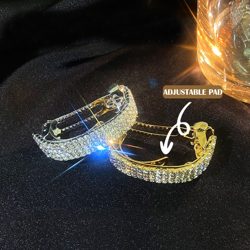 [SG | Shining & Pretty] Metal Hair Clip Ponytail Holder, Mounted with Crystals, Adjustable Pad, in Silver and Gold Colours