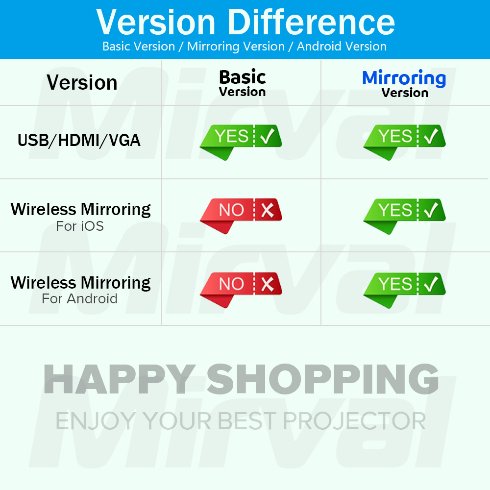 【Android OS】Mirval A9 Android System LED 1080P Projector WiFi Bluetooth Portable Full HD 3500 Lumens Mini Home Theater Projectors