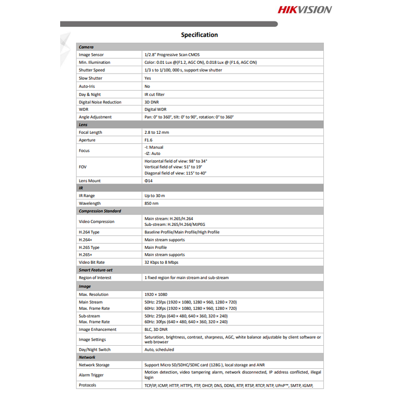 HIKVISION HD1080P 2MP WIFI IP CAMERA