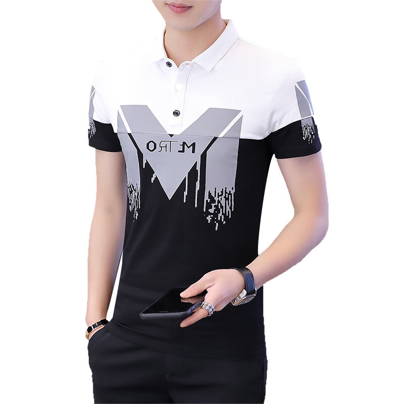 HYX Short Sleeve T-shirt Young MEN'S Summer 2020 New Style Joint Polo Shirt Printed Fold-down Collar Handsome Pullover Fashion