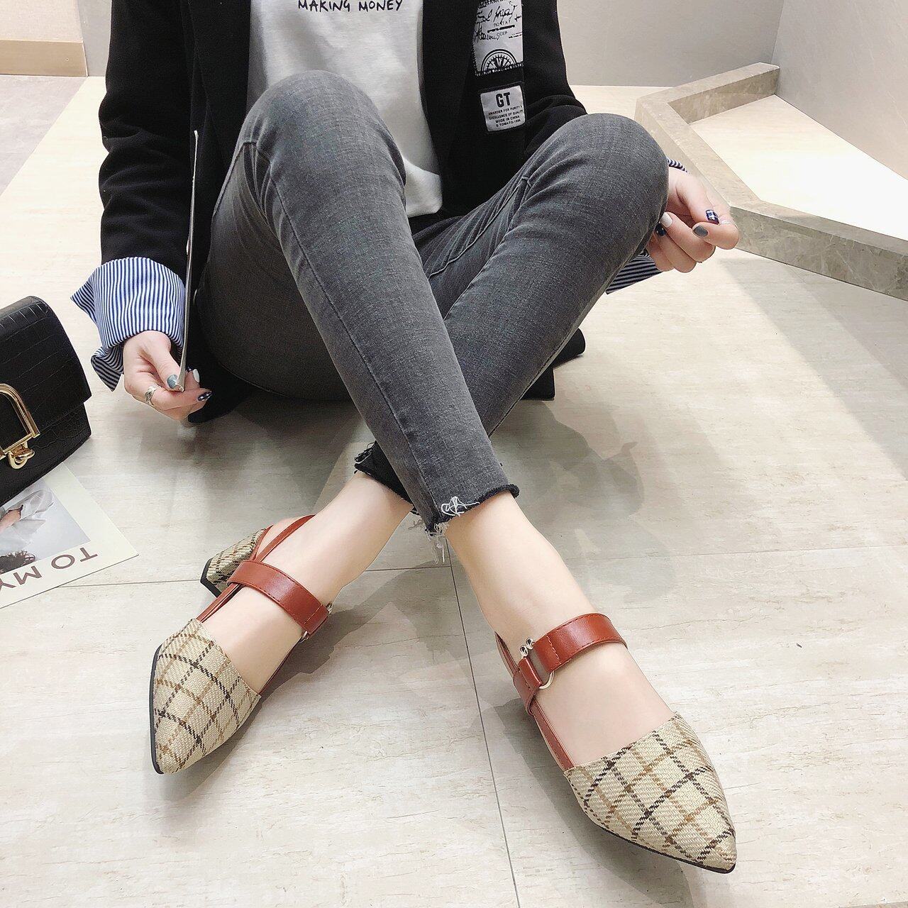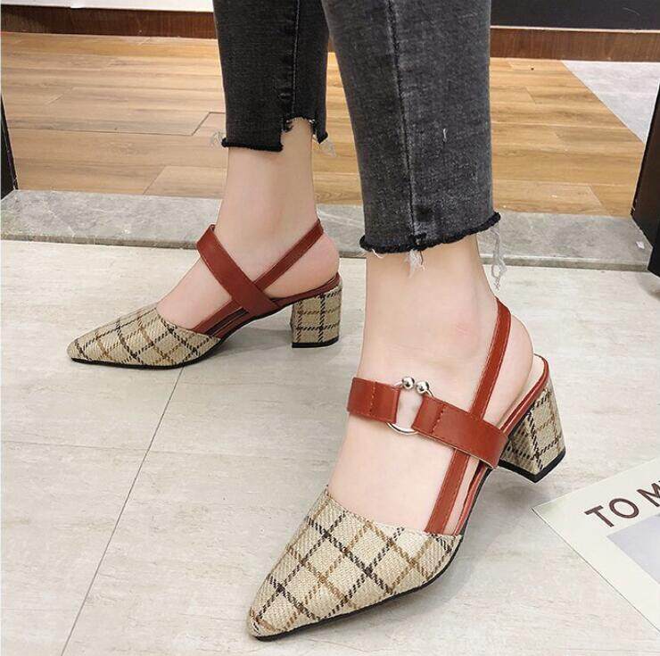 Thick-heeled Baotou High-heeled Sandals Shoes Pointed Mary Jane Women's Shoes