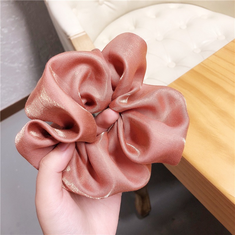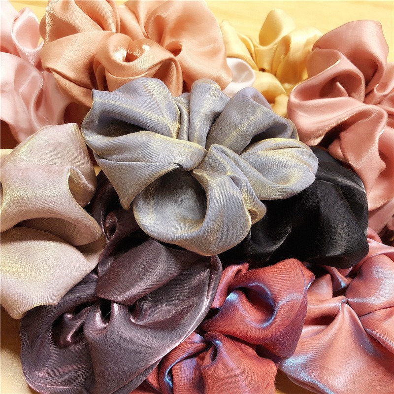 [SG | Fluffy] Vintage Pearly Light Silky Satin Big Scrunchies Women Hair Ties - Big Scrunchy Hair Bands Elastic Hair Accessories Soft Large Scrunchies For Girl Women