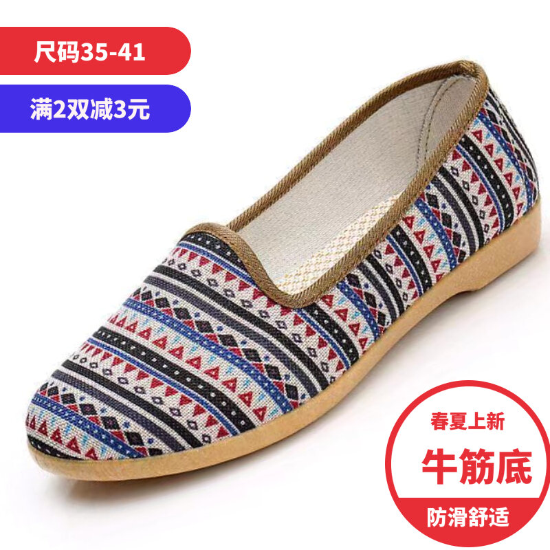 22 Spring and Autumn New Women's Shoes Old Beijing Cloth Shoes Middle-Aged and Elderly Mom Shoes Slip-on Tendon Sole Single-Layer Shoes Non-Slip All-Match