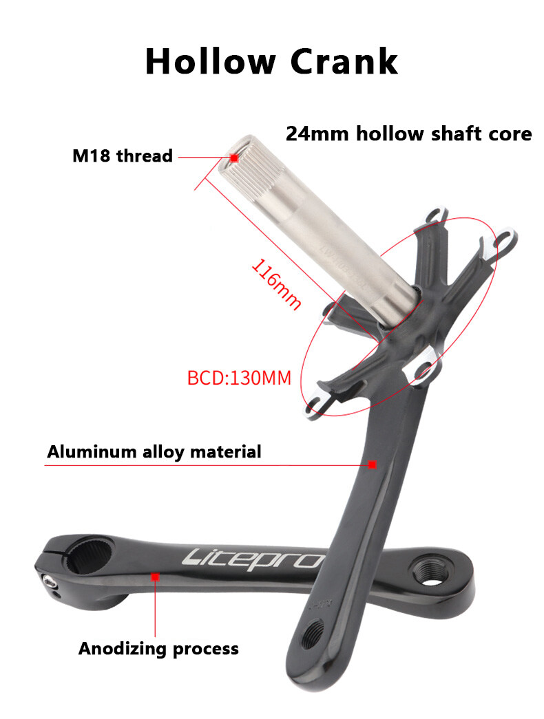 LP Litepro Folding Bike Crank Aluminum Alloy hollow crank set 45/47/53/56/58T 130BCD BMX Crank Arm