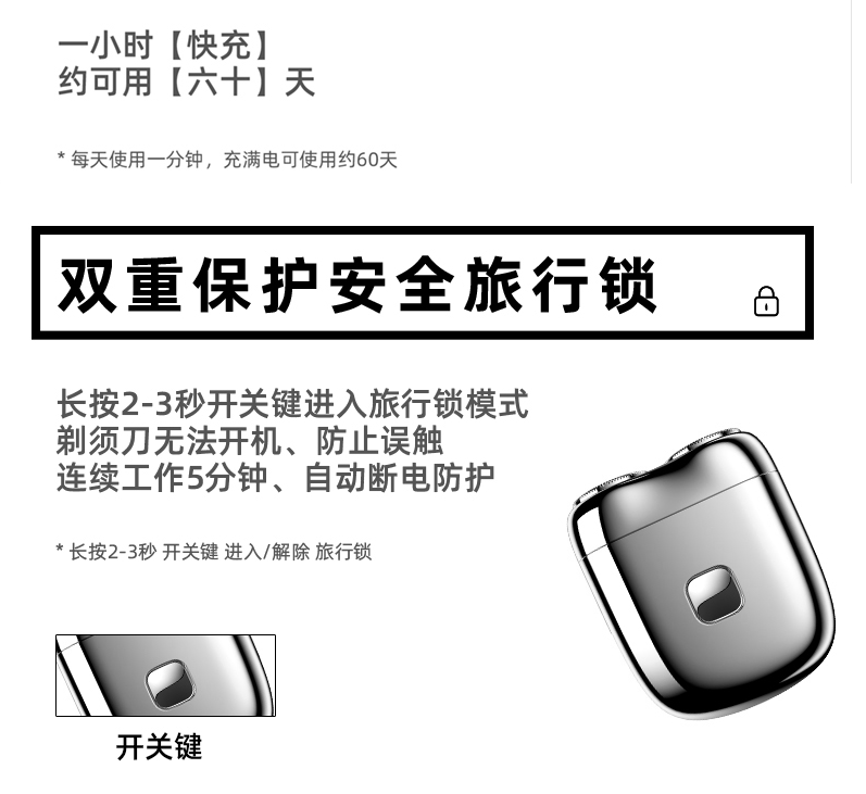 Package includes: shaver, TYPE-C charging cable, cleaning brush, instruction set