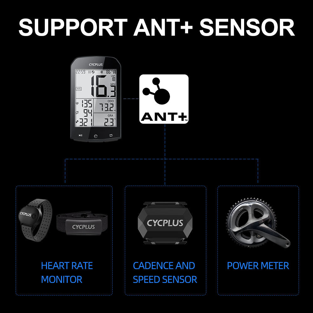 - ANT+ Peripheral supported: heart rate monitor, cadence sensor, powermeter
