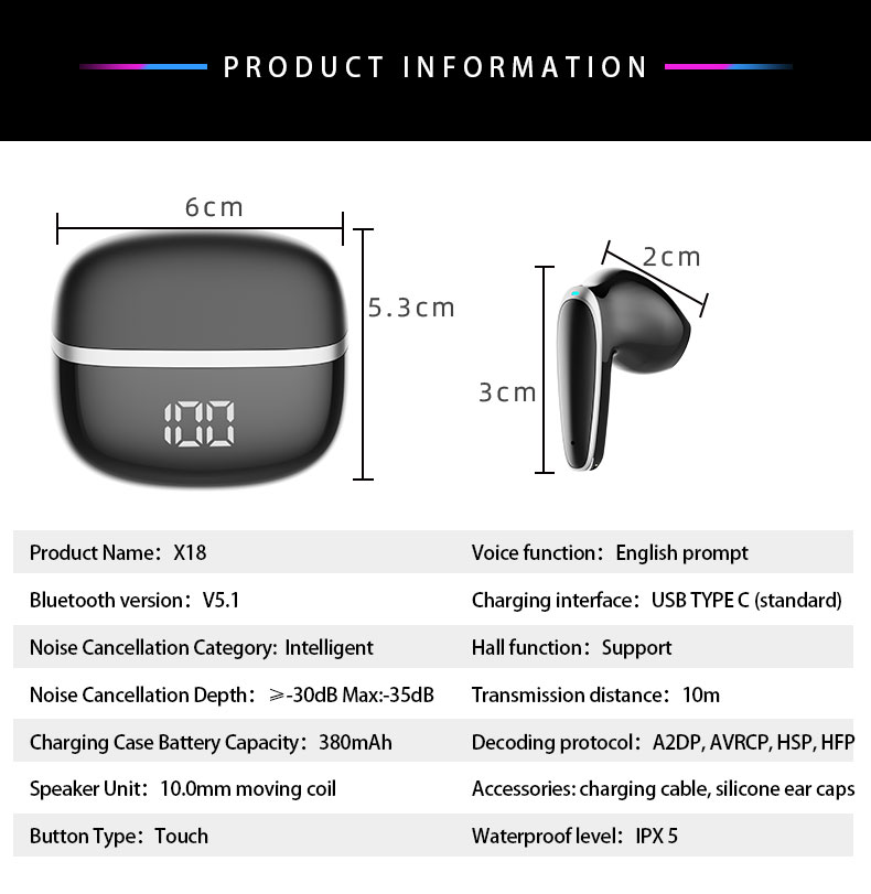 【2022 NEW】COTIN X19 Bluetooth Headphones Touch Control ture Wireless Earbuds Built-in Microphone Sport Earphones Game Headset high-Grade in-Ear Headset for Android iOS TV Pad Gaming Computer Laptop