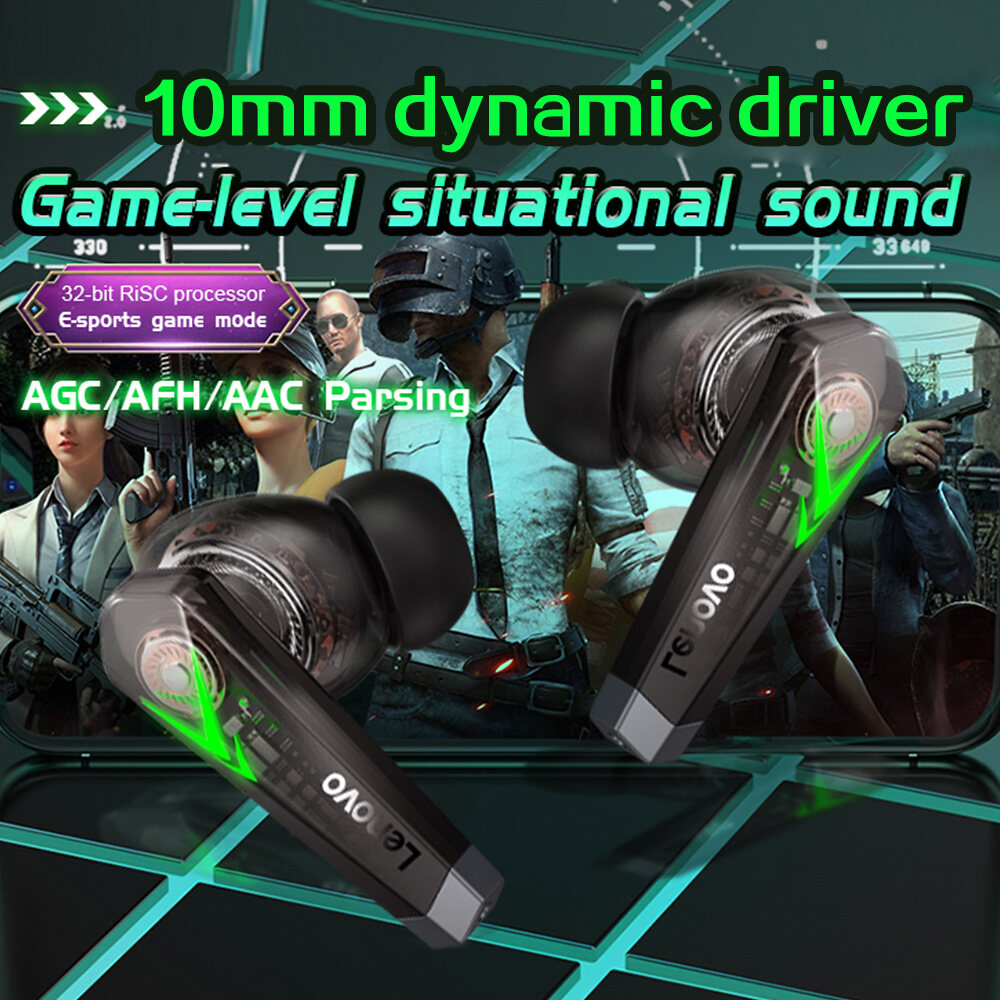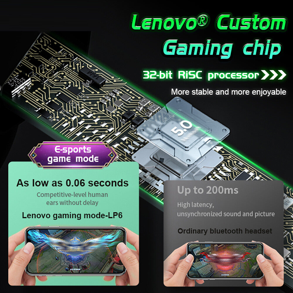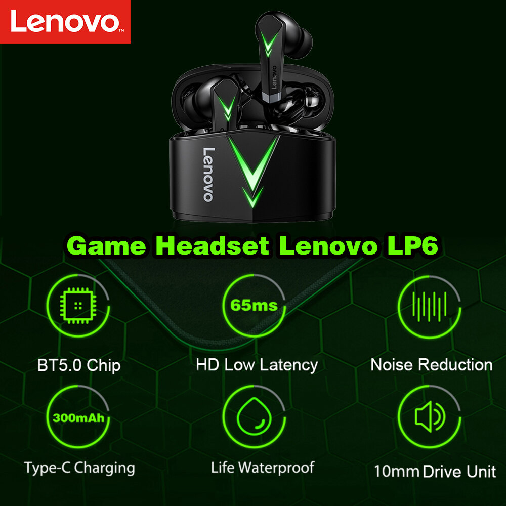 Lenovo LP6 Game Headset BT5.0 Wireless Earphones 65ms Low Latency DSP Noise Reduction Game/Music Dual Mode In-ear Earbuds for Gamers Sports