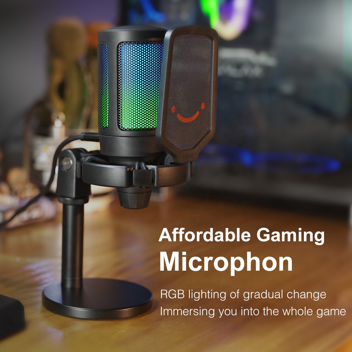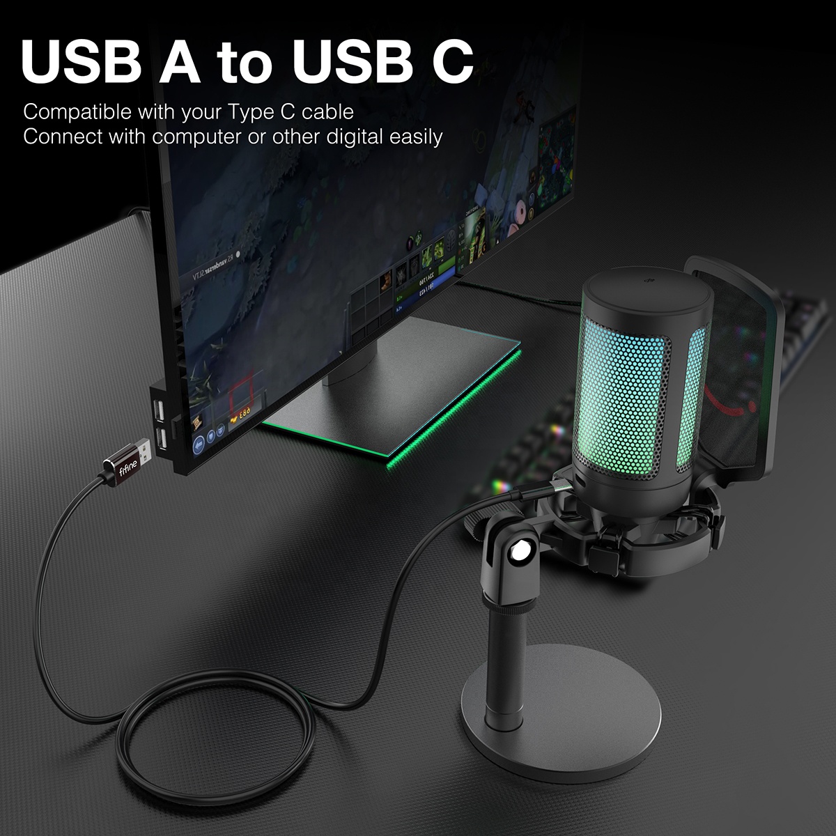 FIFINE A6 RGB USB Condenser Microphone with Mute Button & Gain Control, for Gaming, Streaming, Podcasting, Facebook, Youtube
