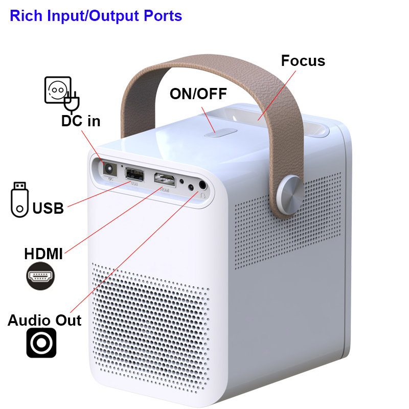 • Resolution 1920x1080p physical resolution • LED projector/built-in battery (optional). •Android 9.0 OS. Pre-installed NETFLIX, YOUTUBE •Support wireless sync display with Android phone /iphone •Support WiFi & Bluetooth function•Support vertical +-40°,Support Horizontal+-40° • Hermetically sealed optical engine engine
